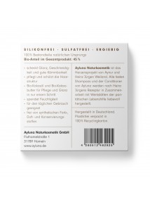 Mit dem festen Conditioner von Ayluna bin ich mehr als zufrieden. Meine Haare sind danach super gut zu kämmen und fallen nicht zusamme, haben Stand und fülle.